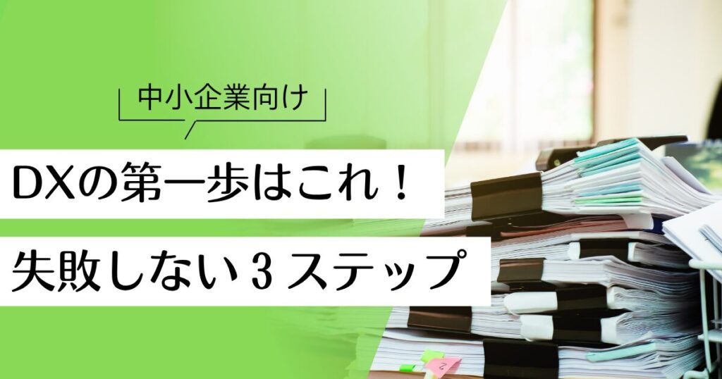 地方の中小企業の経営者様や担当者様から、このようなお悩みを伺う機会は少なくありません。貴社が DX(デジタルトランスフォーメーション) の「失敗しない3ステップ」を踏み出す上で、この「紙が多い」という課題の解消こそが、最も効果的かつ具体的な DX の第一歩となります。